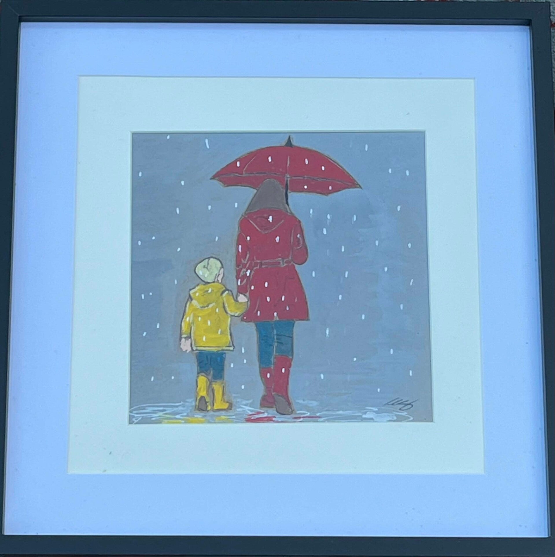 Mother & Son walking in the rain